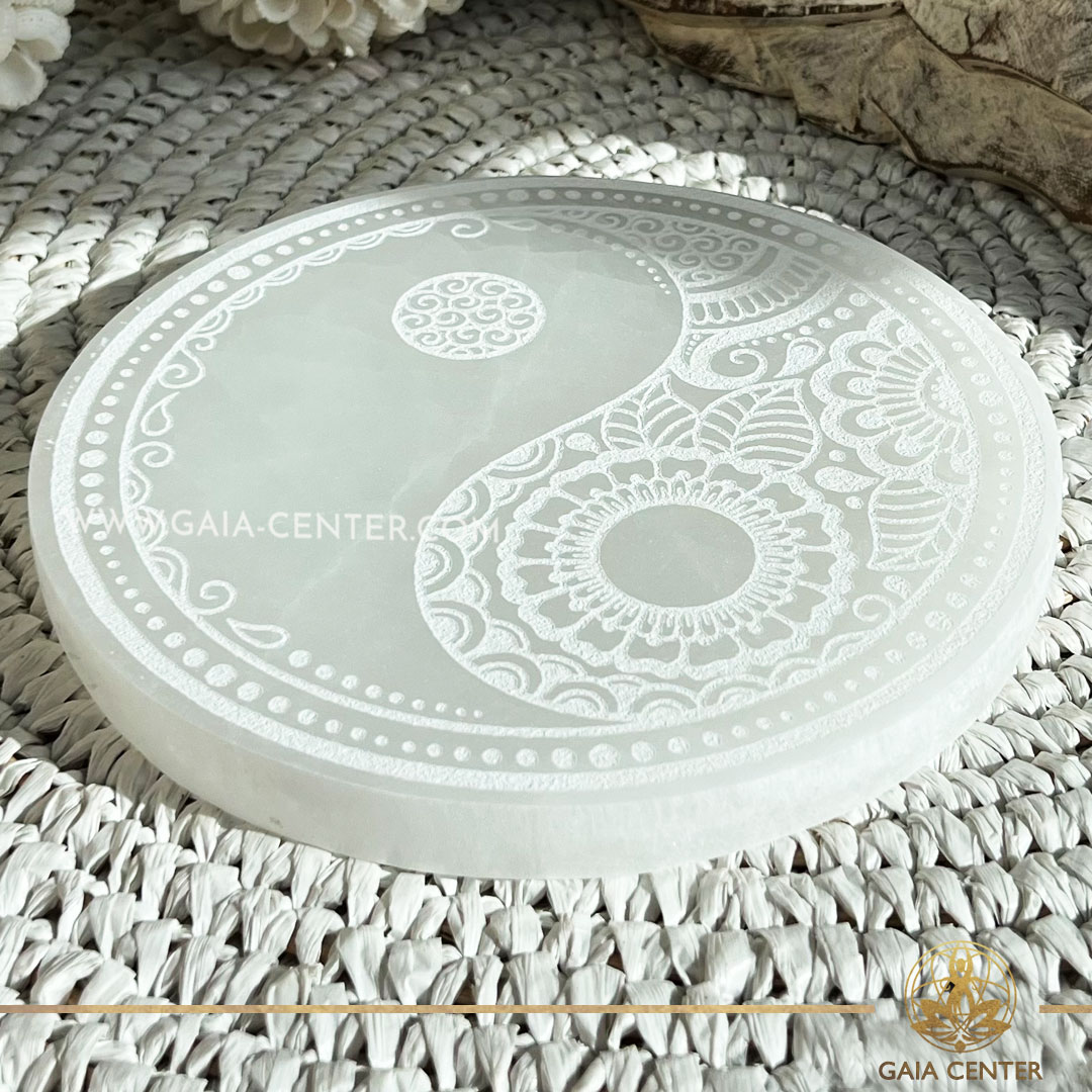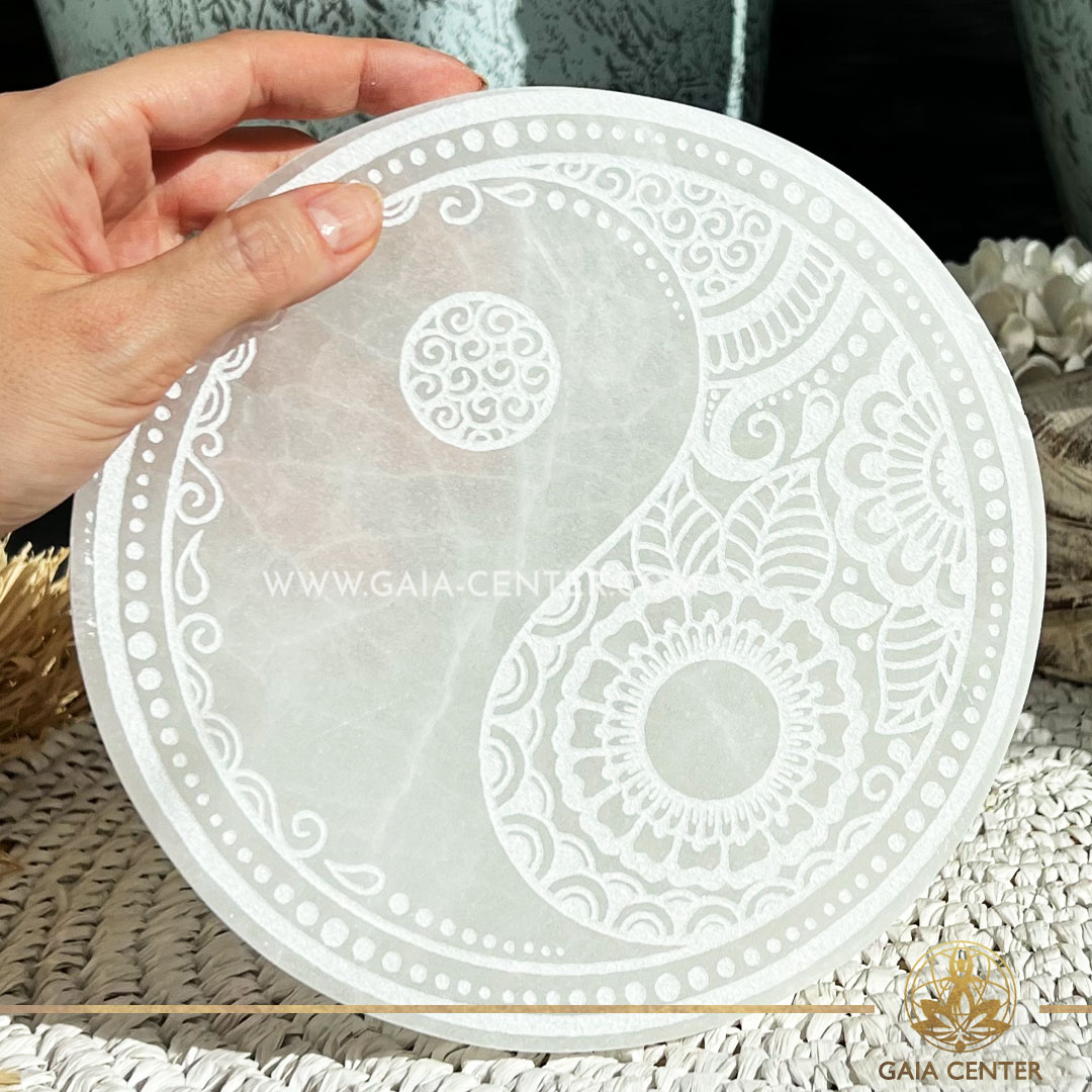Selenite Crystal Charging Plate Yin Yang |XL 18cm| at Gaia Center Crystal shop in Cyprus.