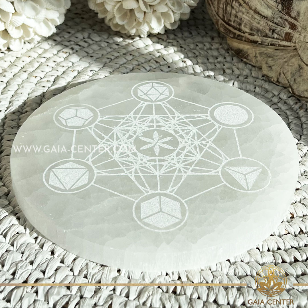 Selenite Crystal Charging Plate Sacred Geometry |XL 18cm| at Gaia Center Crystal shop in Cyprus.