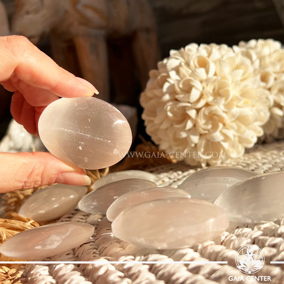 Selenite Crystal Tumblestone Polished |20-30mm small| rom Morocco at GAIA CENTER Center Crystal Shop in Cyprus.