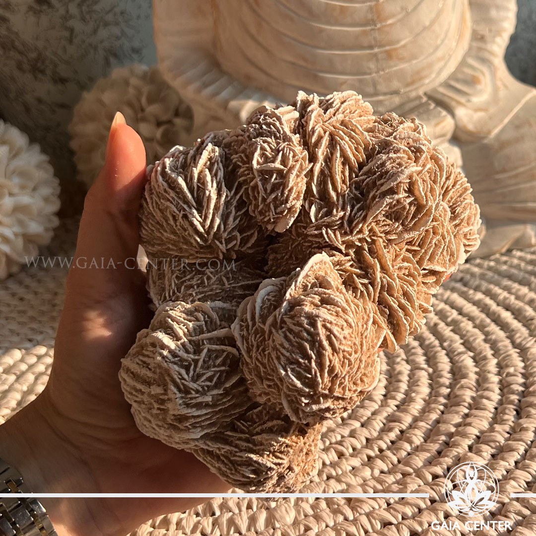 Selenite Sandrose / Desert Rose from Mexico at GAIA CENTER Crystal Shop in Cyprus. Selenite Sand Rose, also known as Desert Rose, is a unique crystal formation that typically occurs in desert regions. Originating from Mexico, this crystal is a beautiful combination of selenite and other minerals. Order online top quality crystals, Cyprus islandwide delivery: Limassol, Larnaca, Paphos, Nicosia. Europe and Worldwide shipping.