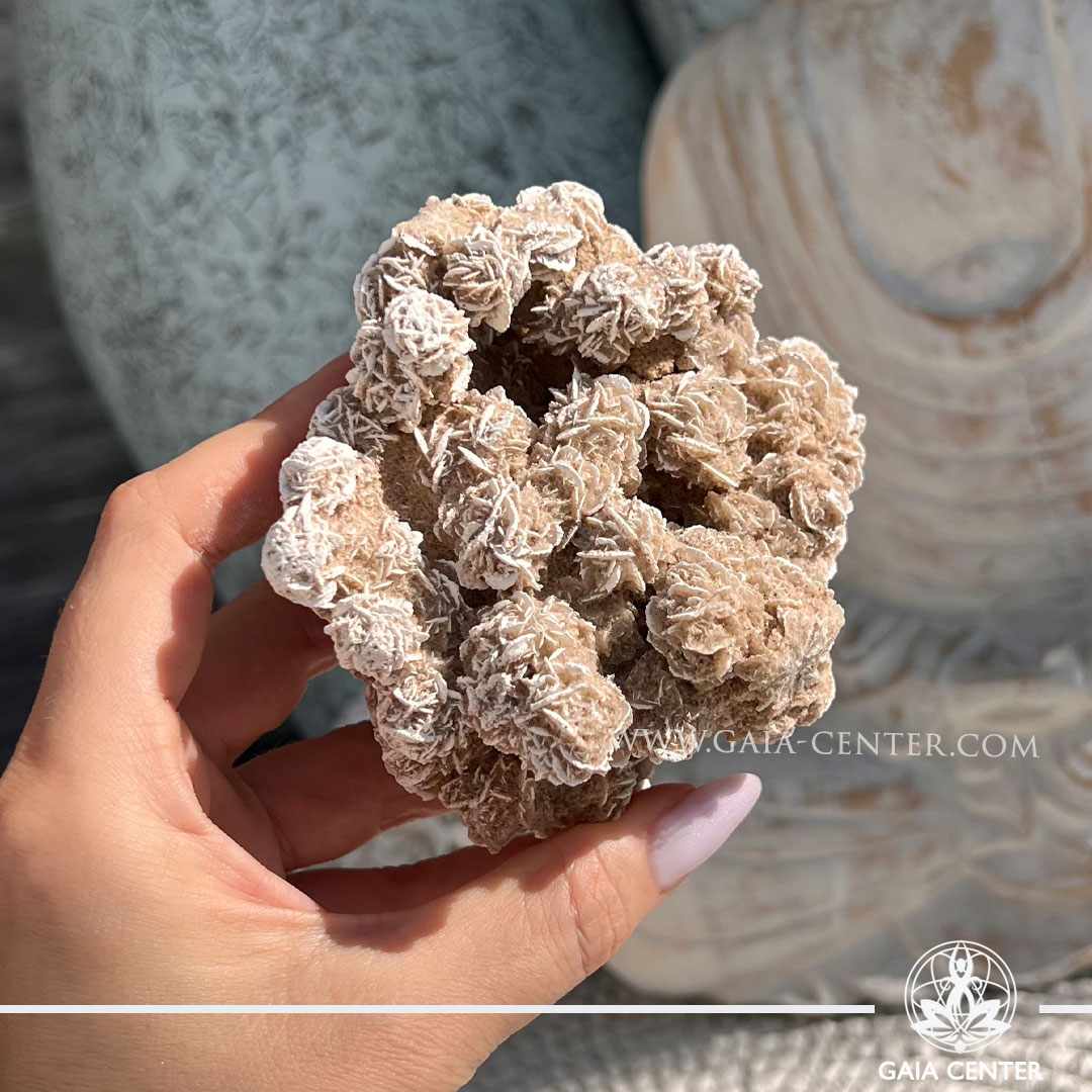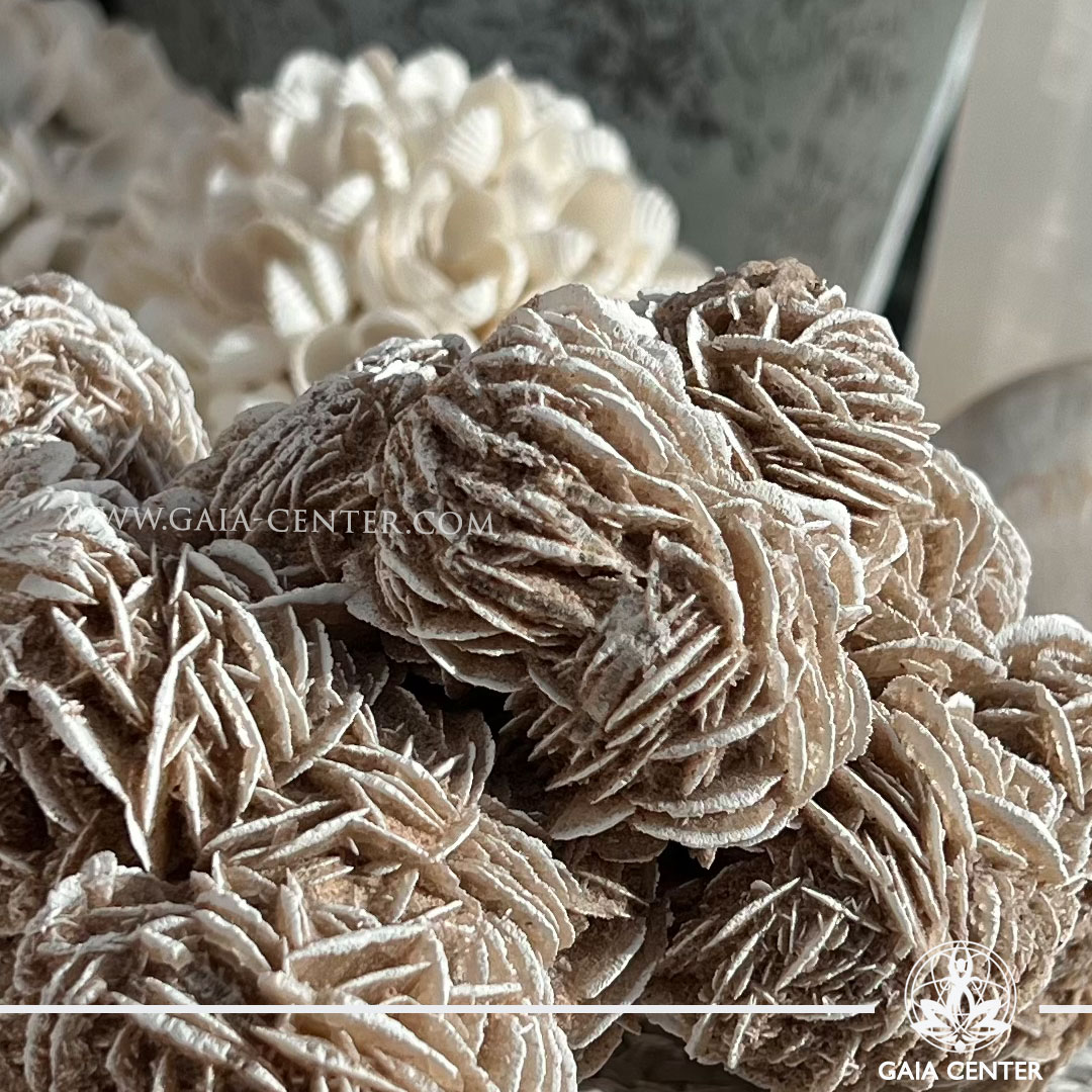 Sandrose Desert Rose Selenite natural clusters from Namibia at GAIA CENTER Crystal Shop in Cyprus.