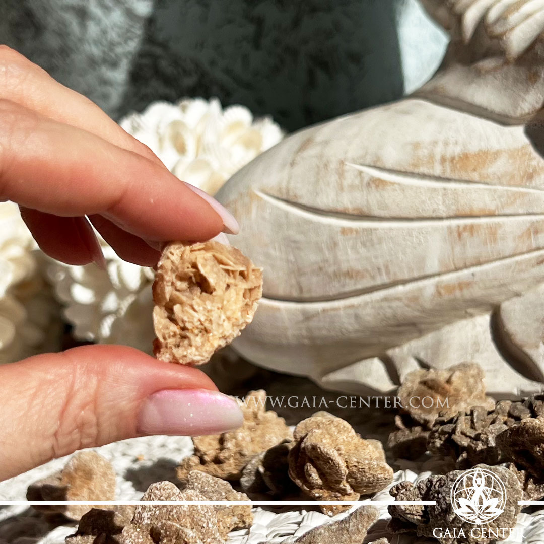 Sandrose Desert Rose Selenite natural clusters from Namibia at GAIA CENTER Crystal Shop in Cyprus.