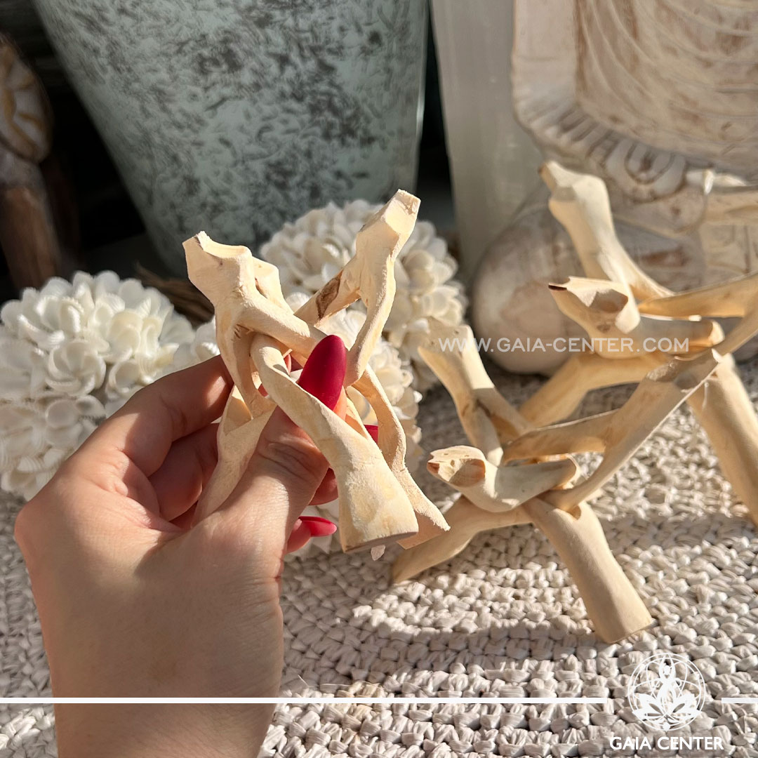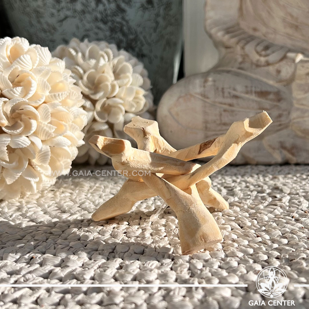 Cobra stand white wood triangle small for Abalone Shell or smudge bowl or plate for smudging White Sage, Palo Santo wood or Aromatic Resin. Can be used for crystal balls and also as a support for singing bowls. Ceremonial items for space clearing and meditation rituals at Gaia Center in Cyprus. Buy online, Cyprus islandwide delivery: Limassol, Paphos, Larnaca, Nicosia.
