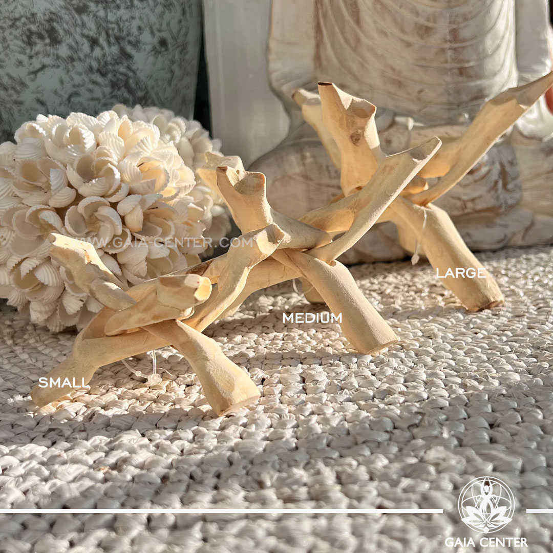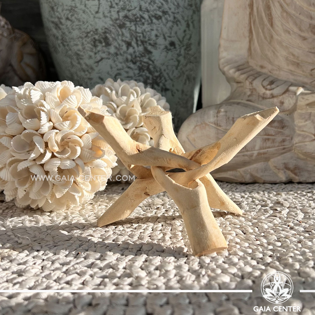 Cobra stand white wood triangle small for Abalone Shell or smudge bowl or plate for smudging White Sage, Palo Santo wood or Aromatic Resin. Can be used for crystal balls and also as a support for singing bowls.