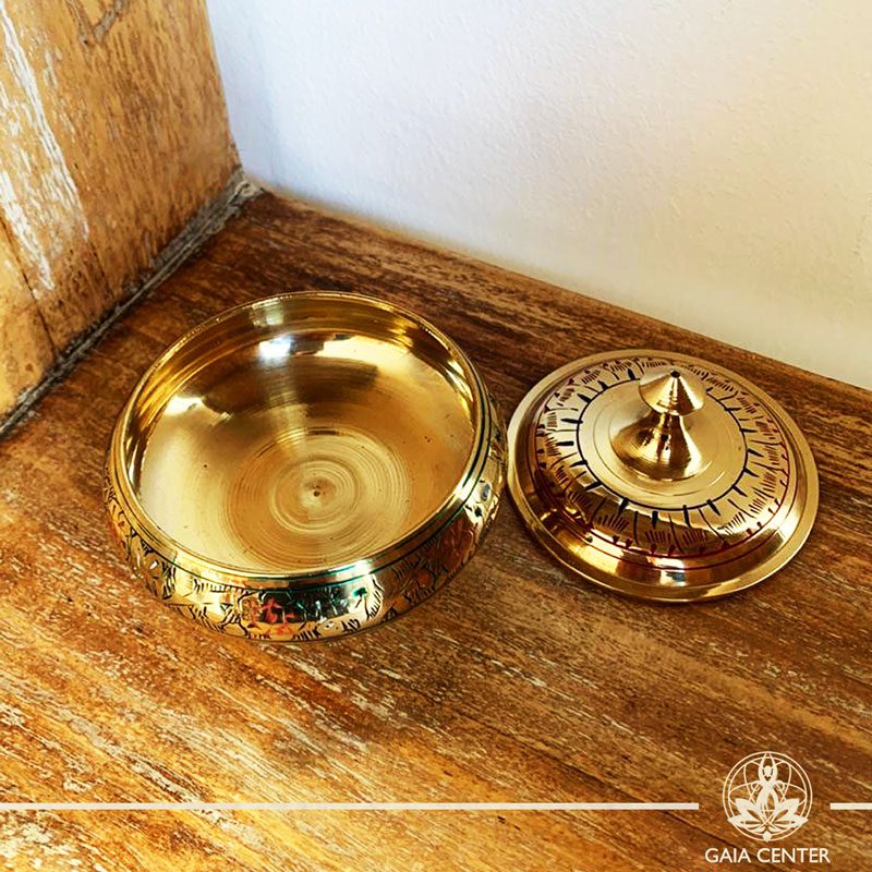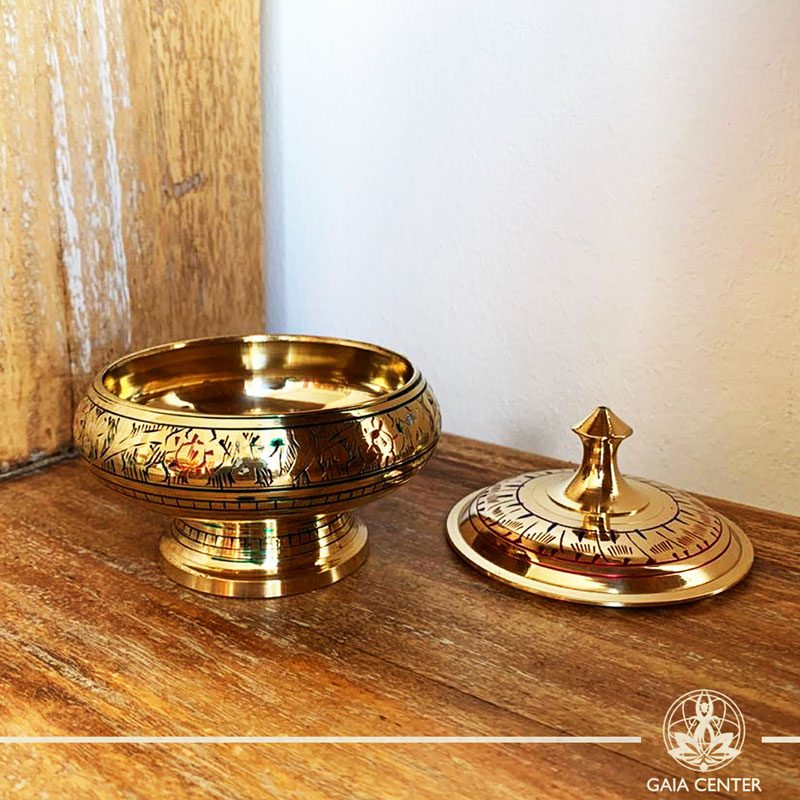 Brass Bowl for charcoal and incense resin for space clearing and smudging at Gaia Center | Cyprus.