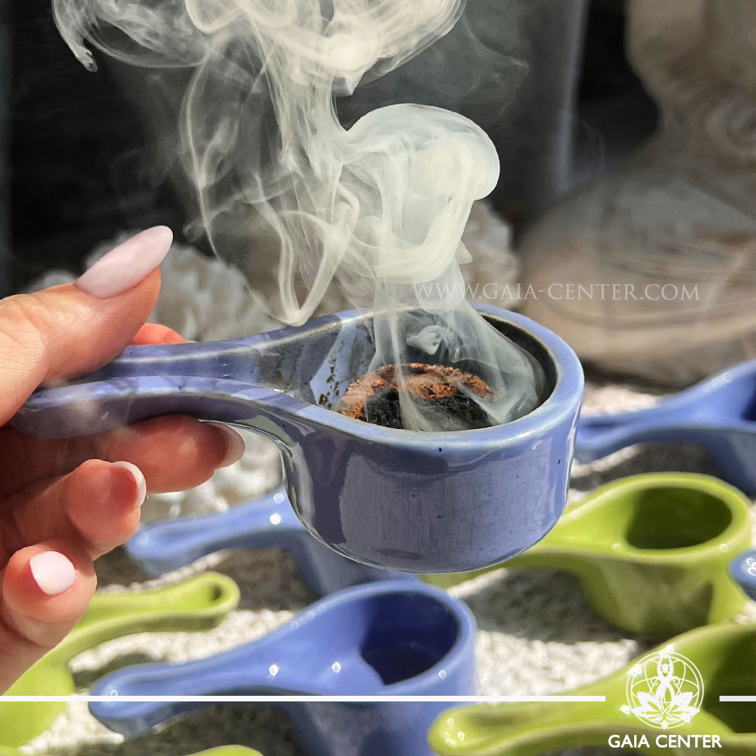 Palo Santo and Smudge Boms Burner | Blue and Green at GAIA CENTER Crystal shop in Cyprus.