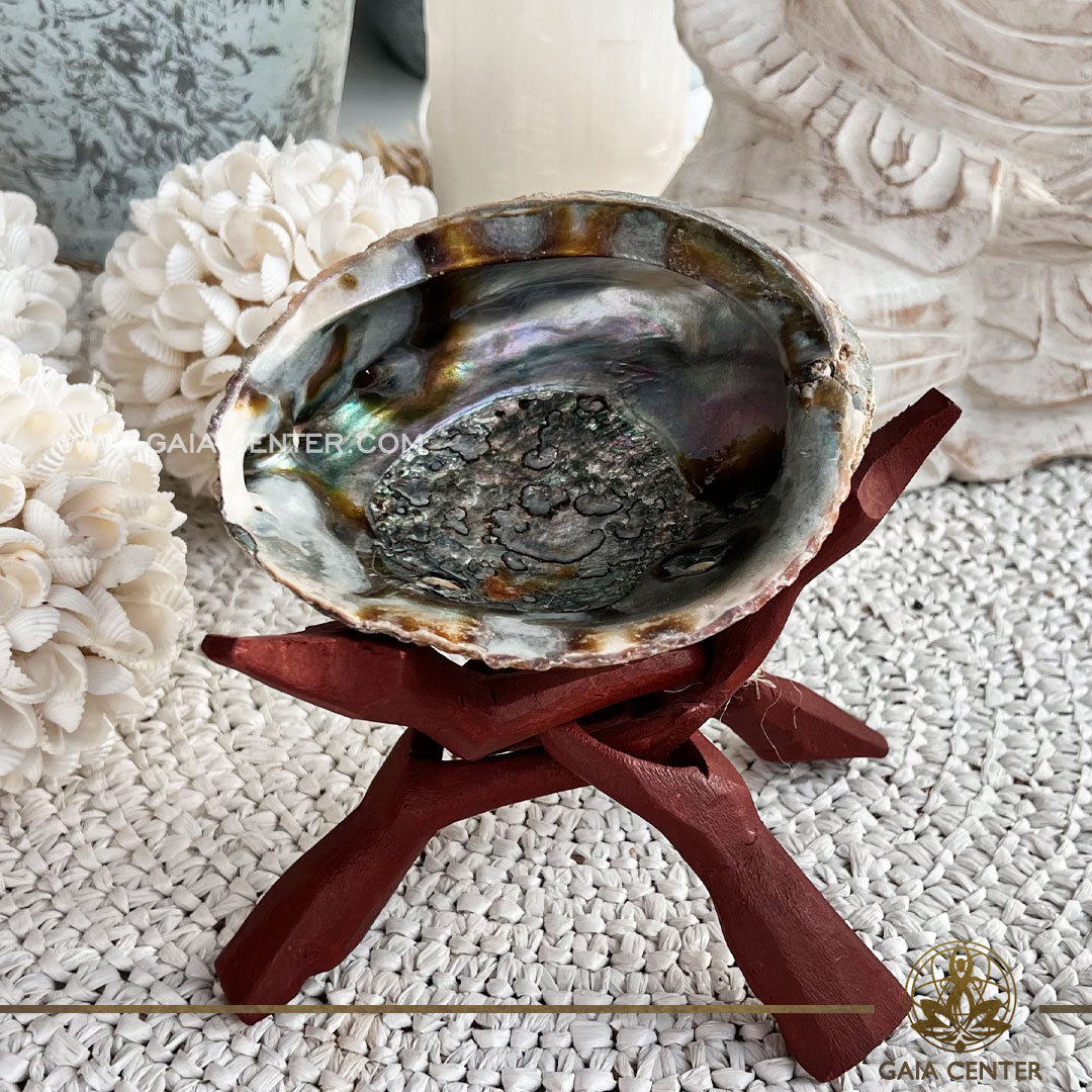 stand-cobra-wood-for-smudging-plate-abalone-shell-small-10cm-3pic-Gaia-Center-Crystal-Incense-Shop-Cyprus