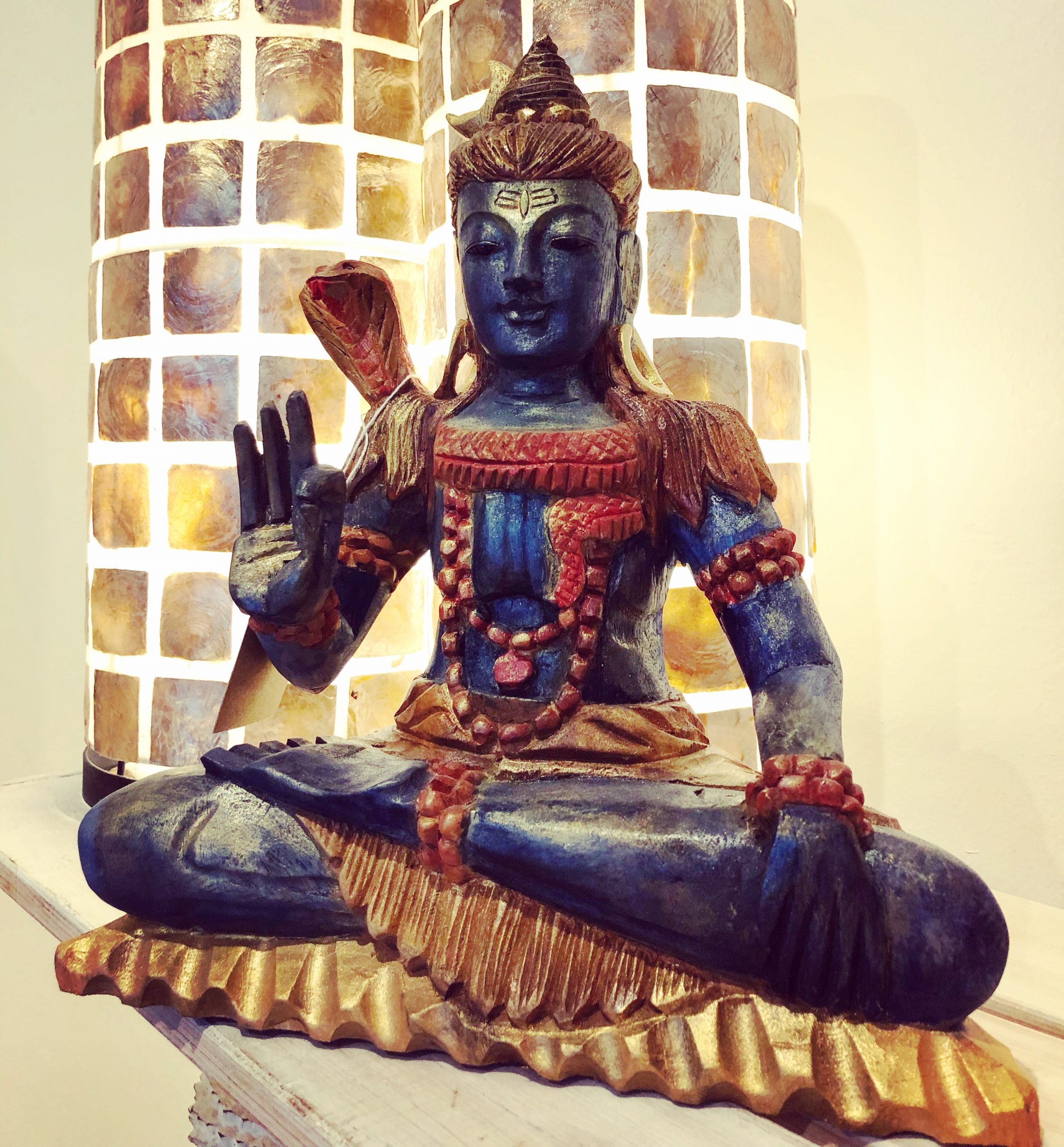 Yoga Lady Statue in blue color. Spiritual items at Gaia Center in Cyprus. Cyprus and International Shipping.
