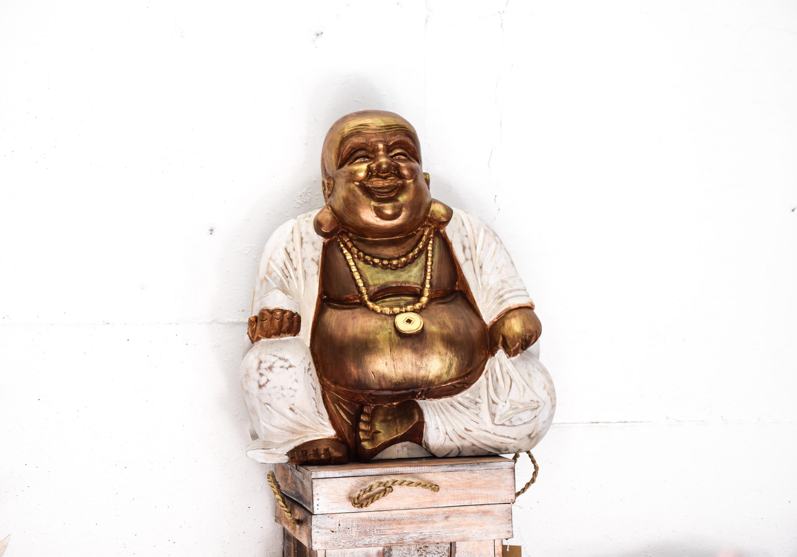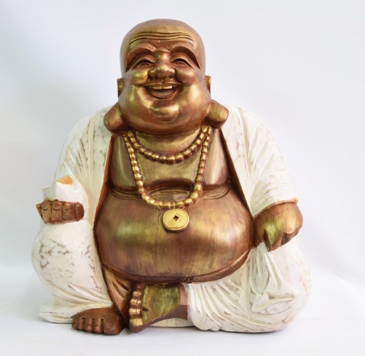 Happy Buddha Statue Wooden at Gaia-Center in Cyprus.