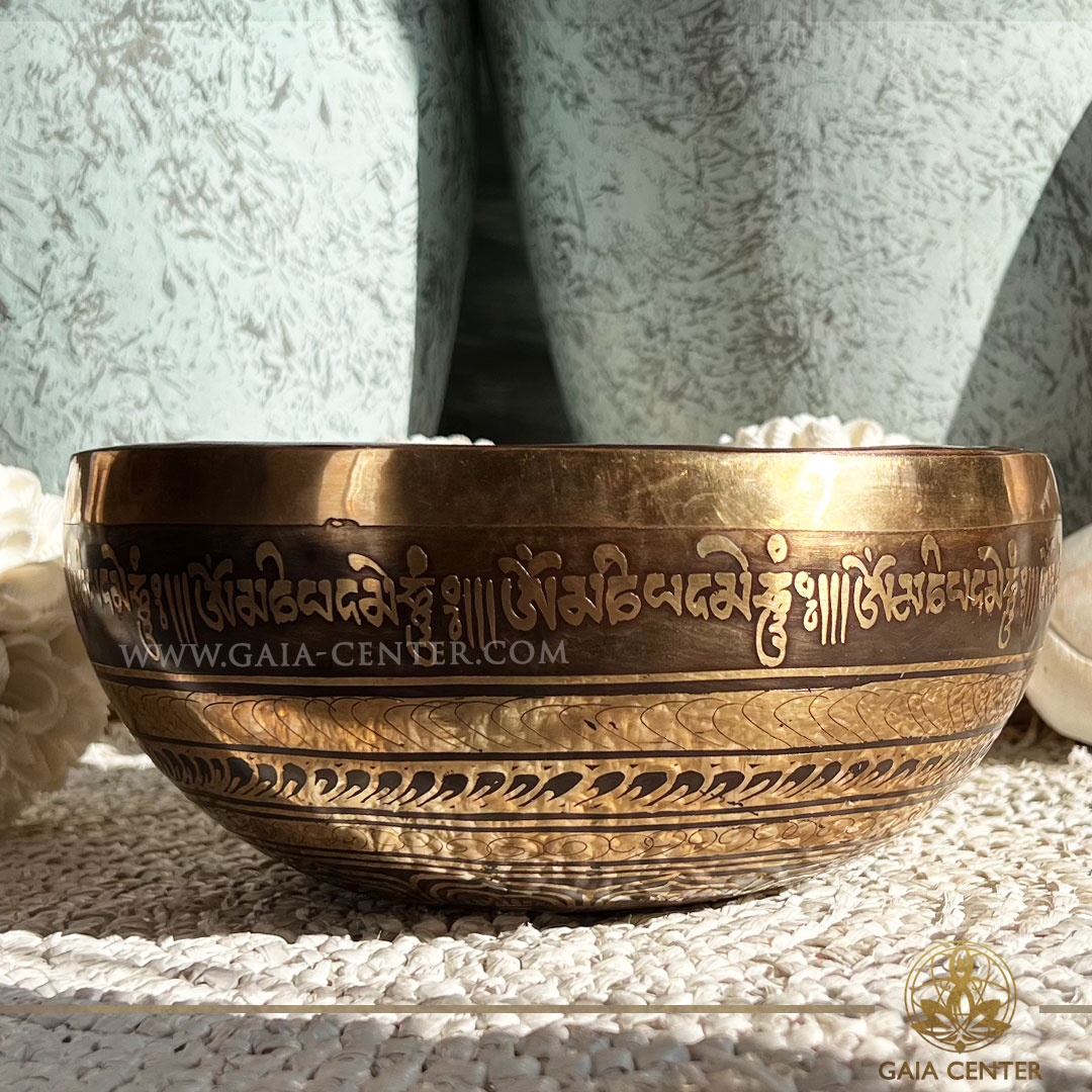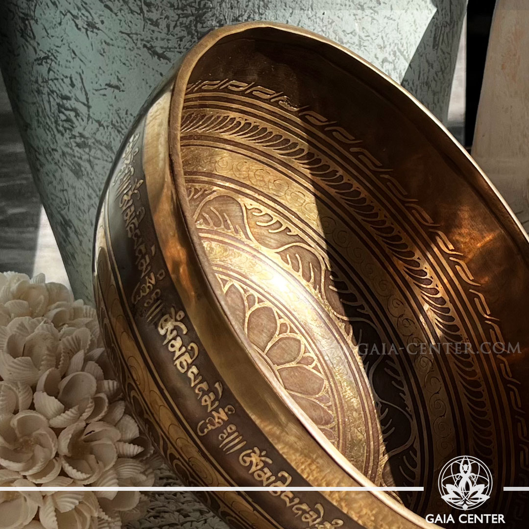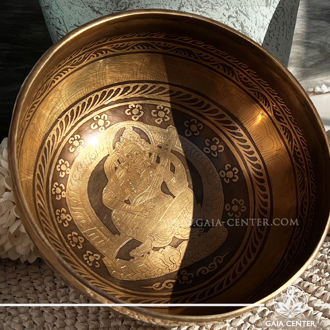 Tibetan-metal-singing-bowl-for-sound-healing-Saraswati-carved-engraving-25-28cm-2pic-Gaia-Center-Crystal-Shop-Cyprus