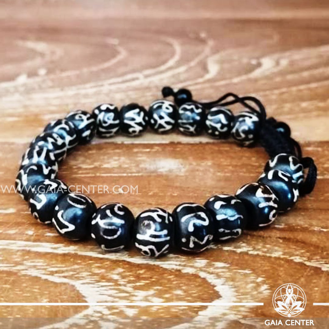 Yak Bone Tibetan Mantra bracelet. Adjustable string.