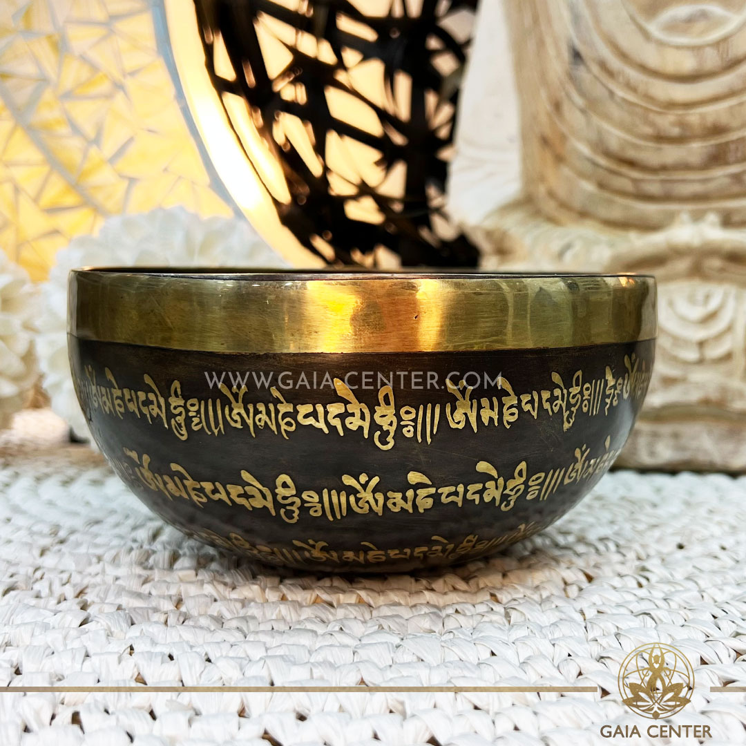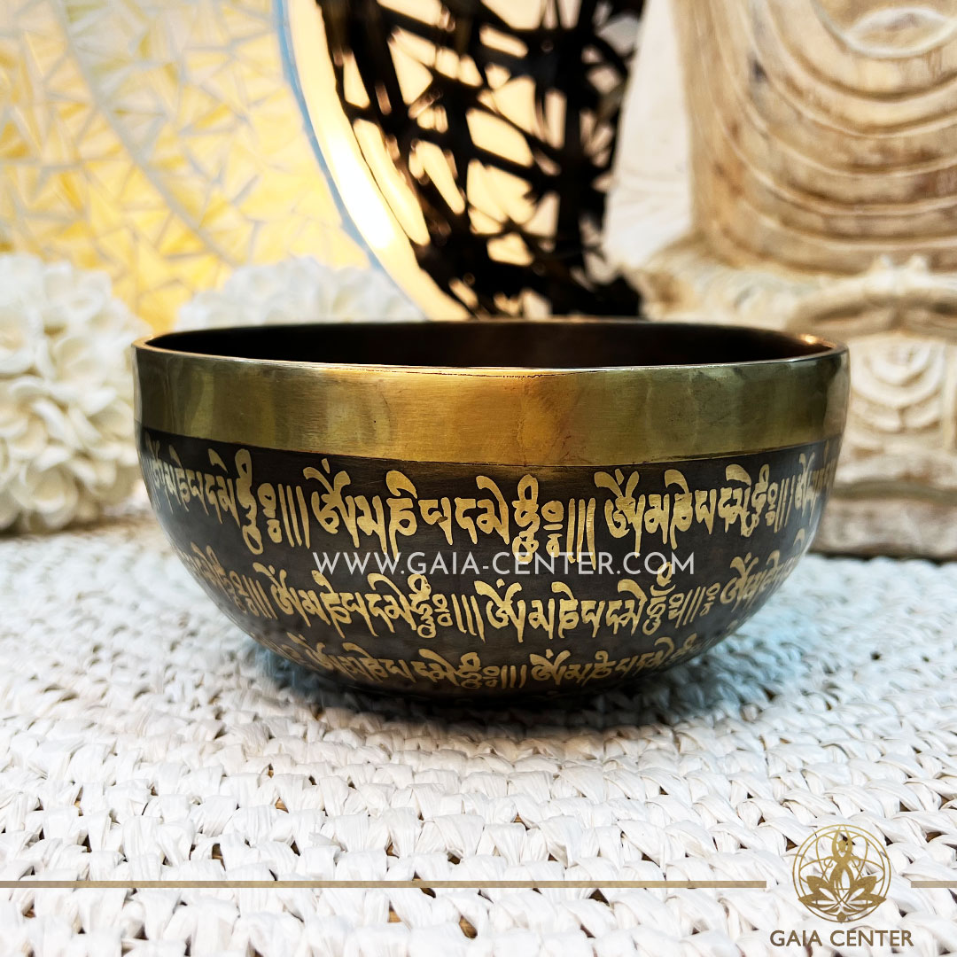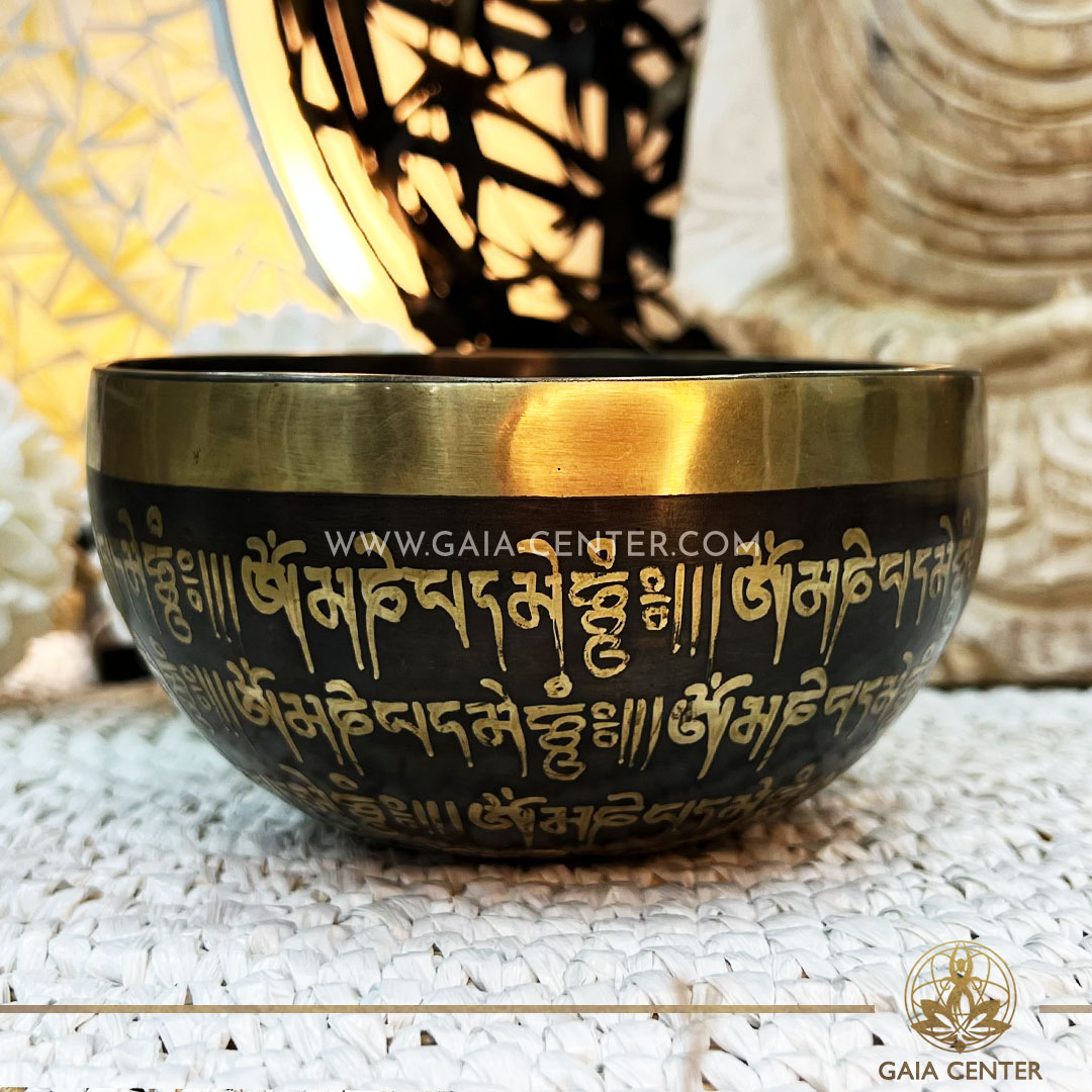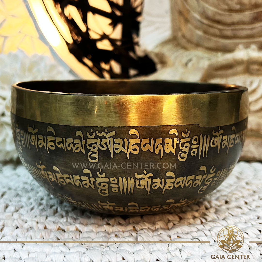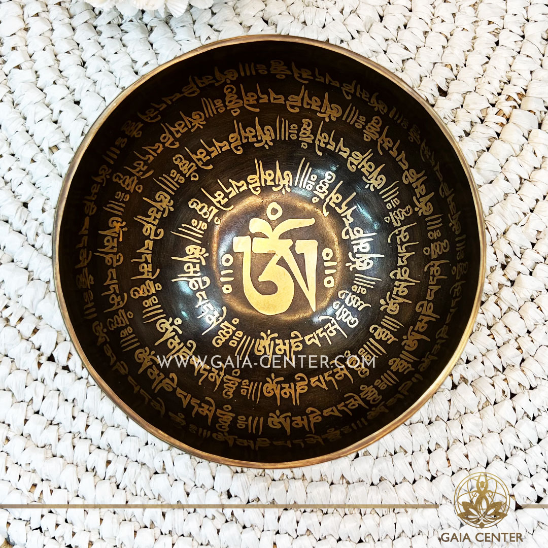 Tibetan Sining Bowl metal with engraved design auspicious buddhist symbols, Om symbol and prayers /mantras for Sound Healing Therapy at GAIA CENTER | CYPRUS. Original top quality from Nepal. Cyprus delivery: Limassol, Paphos, Nicosia, Larnaca, Paralimni, Strovolos. Including provinces and small suburbs. Europe and International Worldwide shipping. Wholesale and Retail. Shop online for Singing Bowls: https://gaia-center.com
