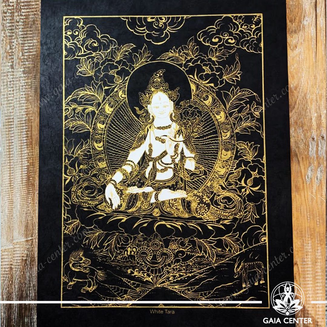 Tibetan White Tara Goddess White & Gold Style. Wall Ornament at Gaia Center | Cyprus.