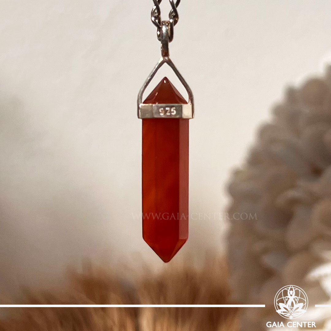 Home » Shop » ✦ CRYSTALS » ✦ ✦ Crystal Pendants » Carnelian Crystal Pendant Point | S925 Sterling Silver Bail
