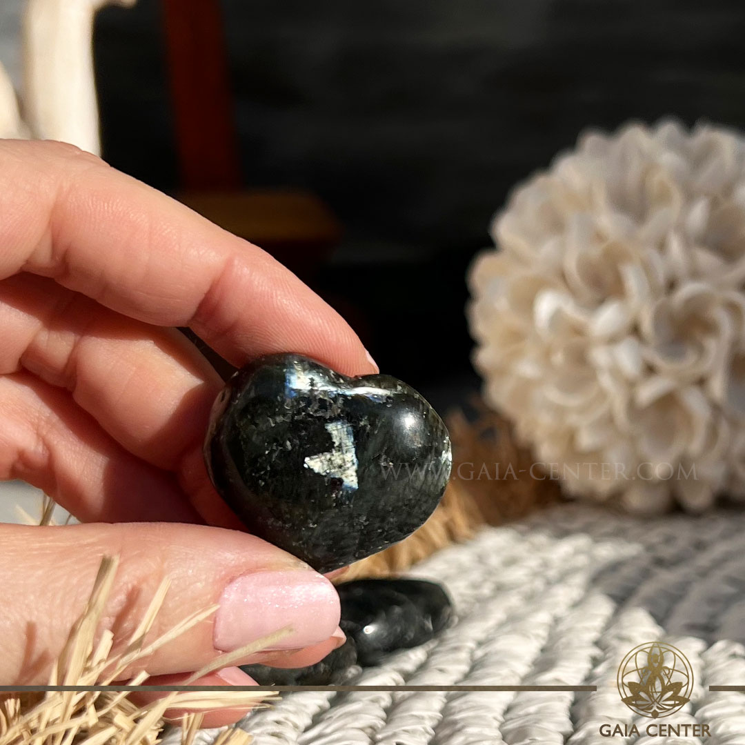 Home » Shop » ✦ CRYSTALS » ✦ ✦ Shapes » Hearts | Moons | Angels | Mushrooms » Larvikite Crystal Puff Heart |25-30mm| India
